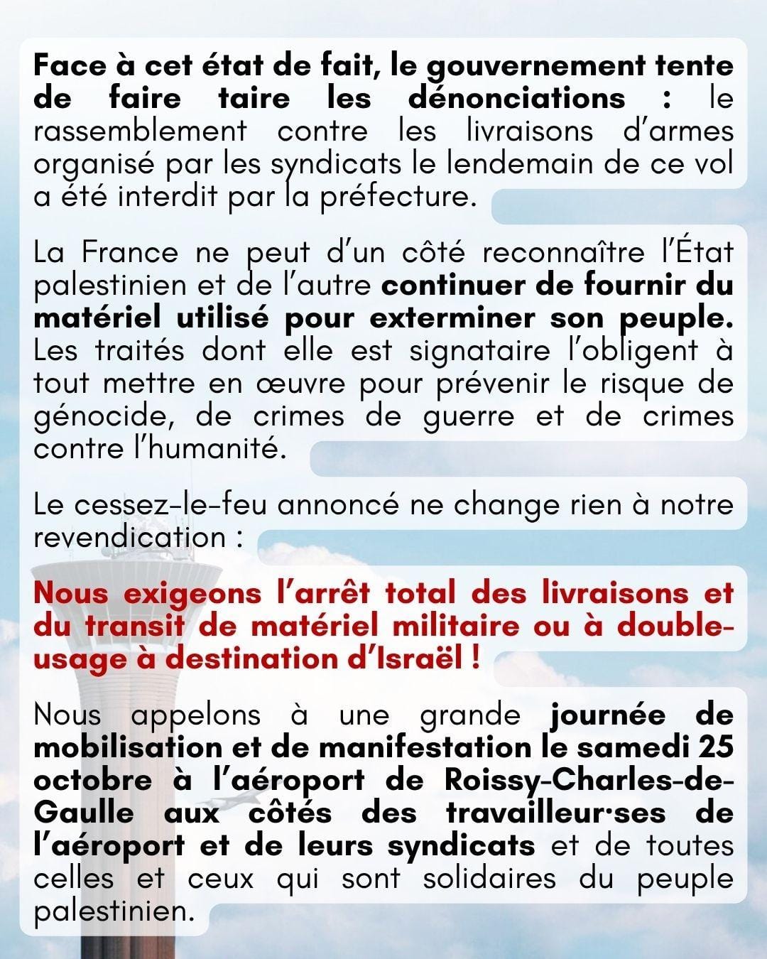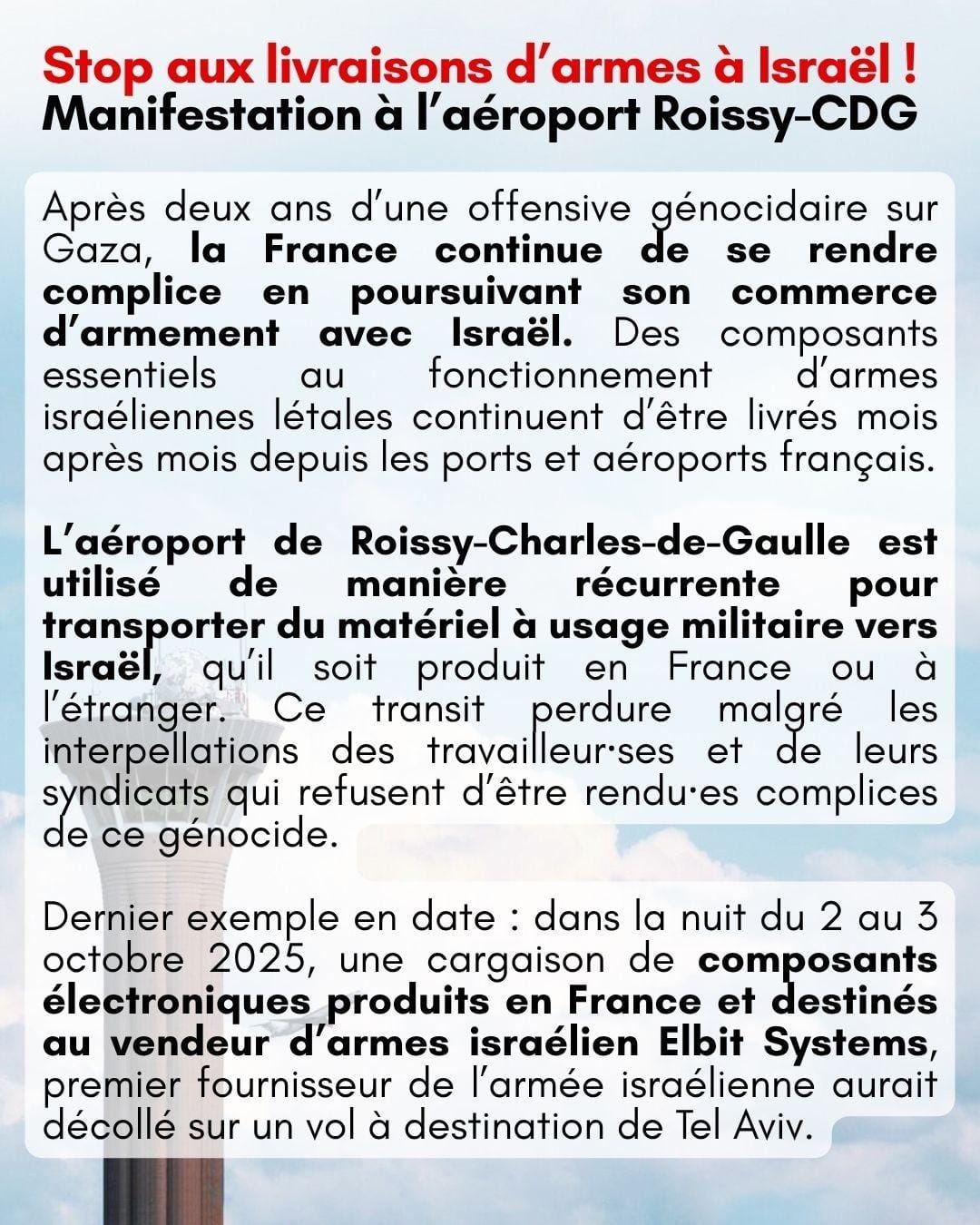 2025 10 25 14H00 MANIFESTATION ROISSY CDG T2 B STOP LIVRAISONS ARMES